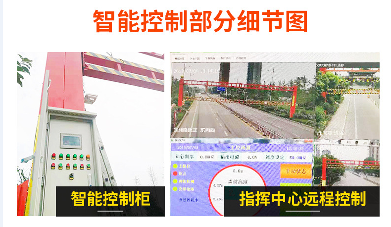 • 防尾隨砸車功能:超高車輛通行時,限高架感知車輛未通行完畢, 一直在設定高度,通行完 畢后自動下降到初始限 高位置。防止車輛通行時砸車 ;